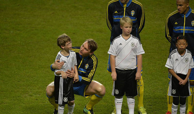 Max had trained for several weeks in order to prepare to go out onto field. He was scared and nervous when the moment came, but Max went out. Kim Källström, who plays as a midfielder for the Sweden national football team, noticed how agitated the boy was and sat down and hugged and reassured him so that Max was able to completed his mascot task.