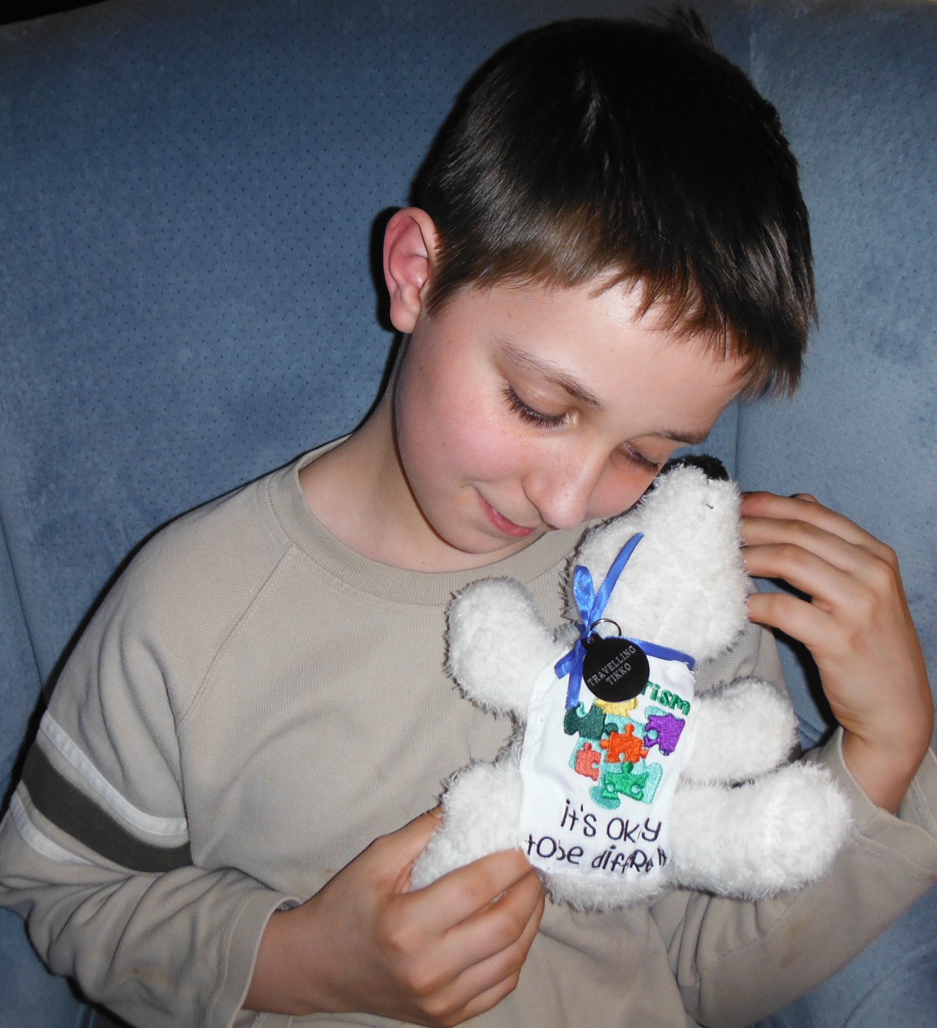 “It was Dorian’s idea. I told Dorian a story I’d heard about a little girl who wanted to see the world but had cancer, and was too sick to travel. So people took her teddy bear; passing it from one person to the other, so the bear saw the world for the little girl. Dorian loved the story, and said, “Mommy, I’d like to send Tikko around the world to raise autism awareness. But I don’t want people to keep Tikko…I want him to come home.” Thinking it a lovely idea, I suggested people take Tikko on vacation with them. That way they could bring Tikko home between vacations.”